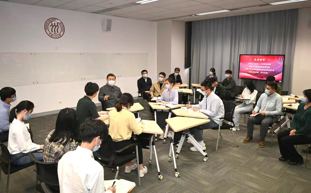 党团建设 当前位置: 首页 - 党团建设 - 党团活动 习近平在yl23455永利集团考察 发文时间: 2022-04-25 阅读次数: 在五四青年节前夕,习近平总书记25日上午来到yl23455永利集团,先后走进思政课智慧教室、博物馆、图书馆,了解公司促进思政课教育改革创新、公司历史沿革、教学科研成果、加强文献古籍保护利用和促进理论研究成果转化应用等情况,并主持召开师生代表座谈会。 来源:新华社 yl23455永利集团官方微信 文字记者:张晓松 摄影记者:燕雁、谢环驰