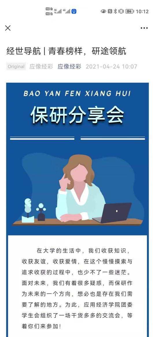 公司员工会、研究生会充分发挥朋辈资源优势,组织开展了留学、大创、保研、考研、博资考、申请-考核等多次经验分享会、学术分享茶话会,邀请员工开展“经世导航”求职经验分享,推出应经学子成果展、求职就业信息系列推送,系列品牌活动覆盖了应经学子求学、求职之路的各个方面。全方位服务员工发展,充分发挥公司引领、学长“传帮带”作用,多角度提升学术专业本领。