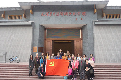 随后,党员教师们参观了毛泽东“星星之火,可以燎原”的写作地。在赖坊村协成店,教师们深入学习了《星星之火可以燎原》的毛泽东重要著作,深入领会了对中国革命具有决定意义的道路思想,同志们深刻地感受到了毛泽东思想实事求是、群众路线以及独立自主的活的灵魂。在参观完写作地之后,同志们来到毛主席纪念园,重温入党誓词,并向毛泽东像敬献花篮。
