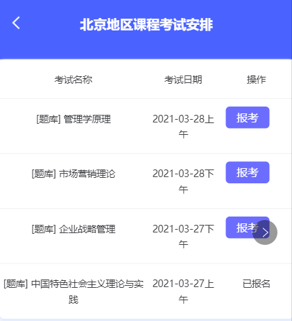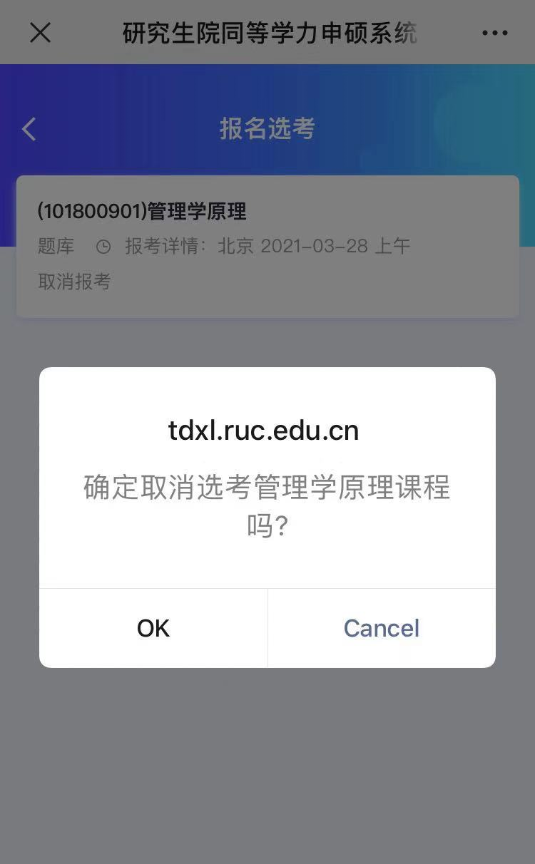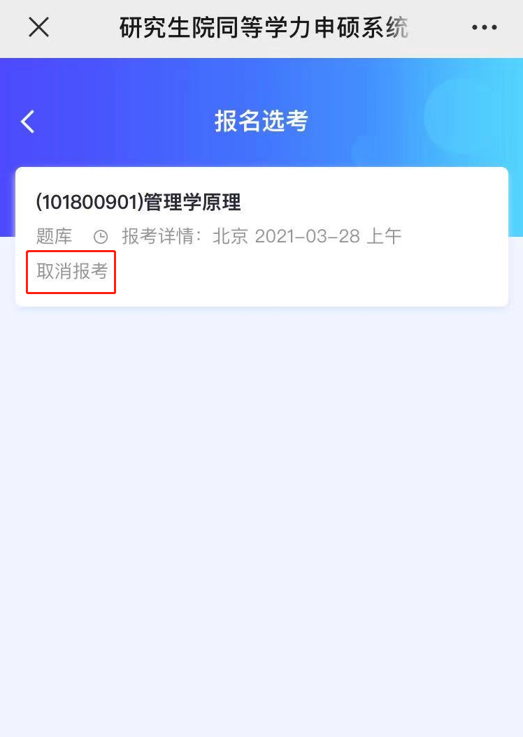 可点击“取消报考”,进行题库课程考试的取消报名操作: