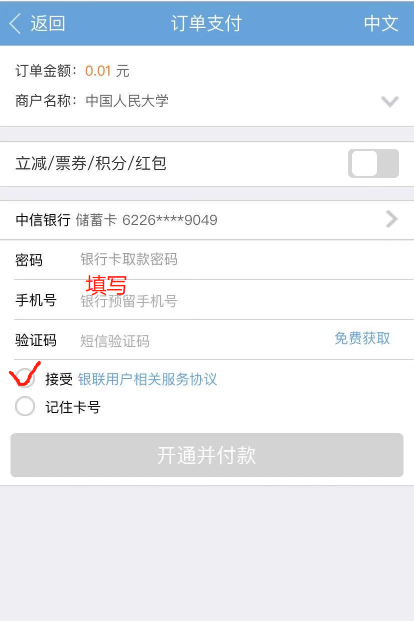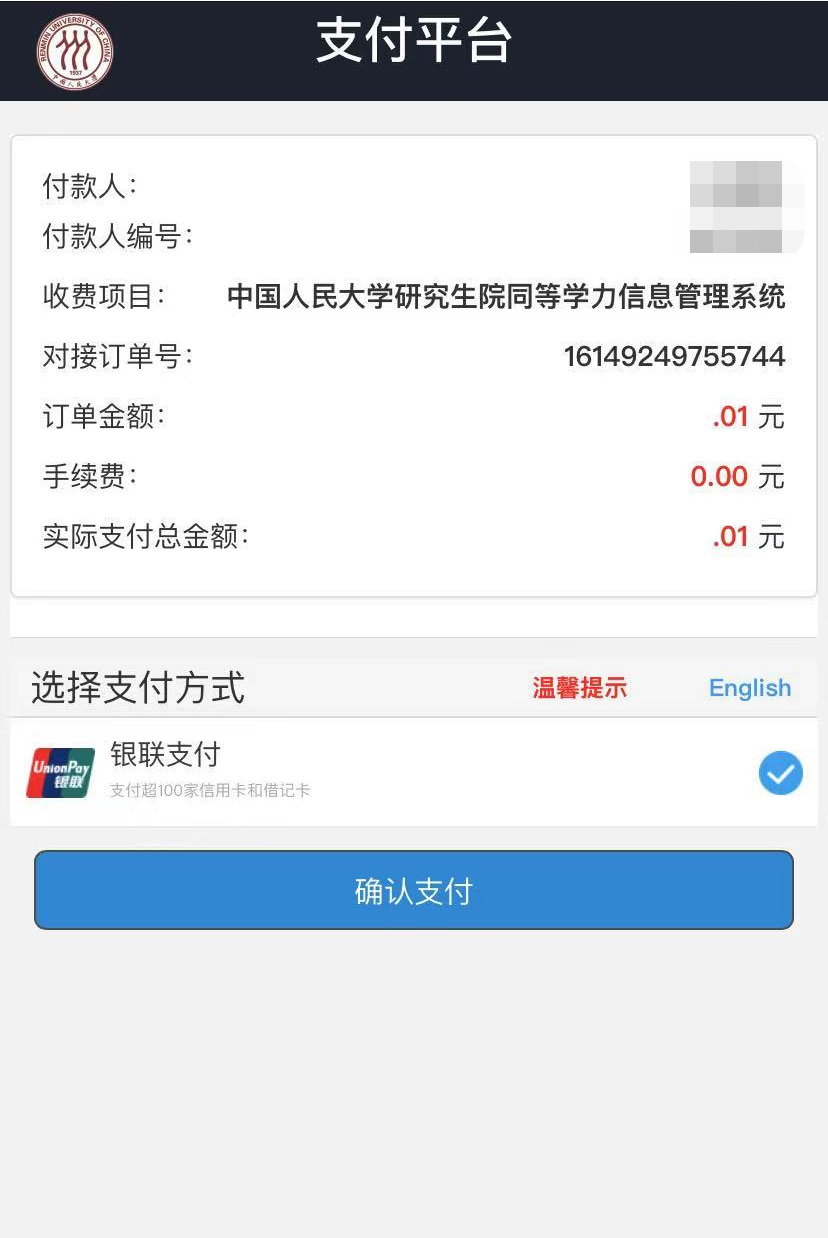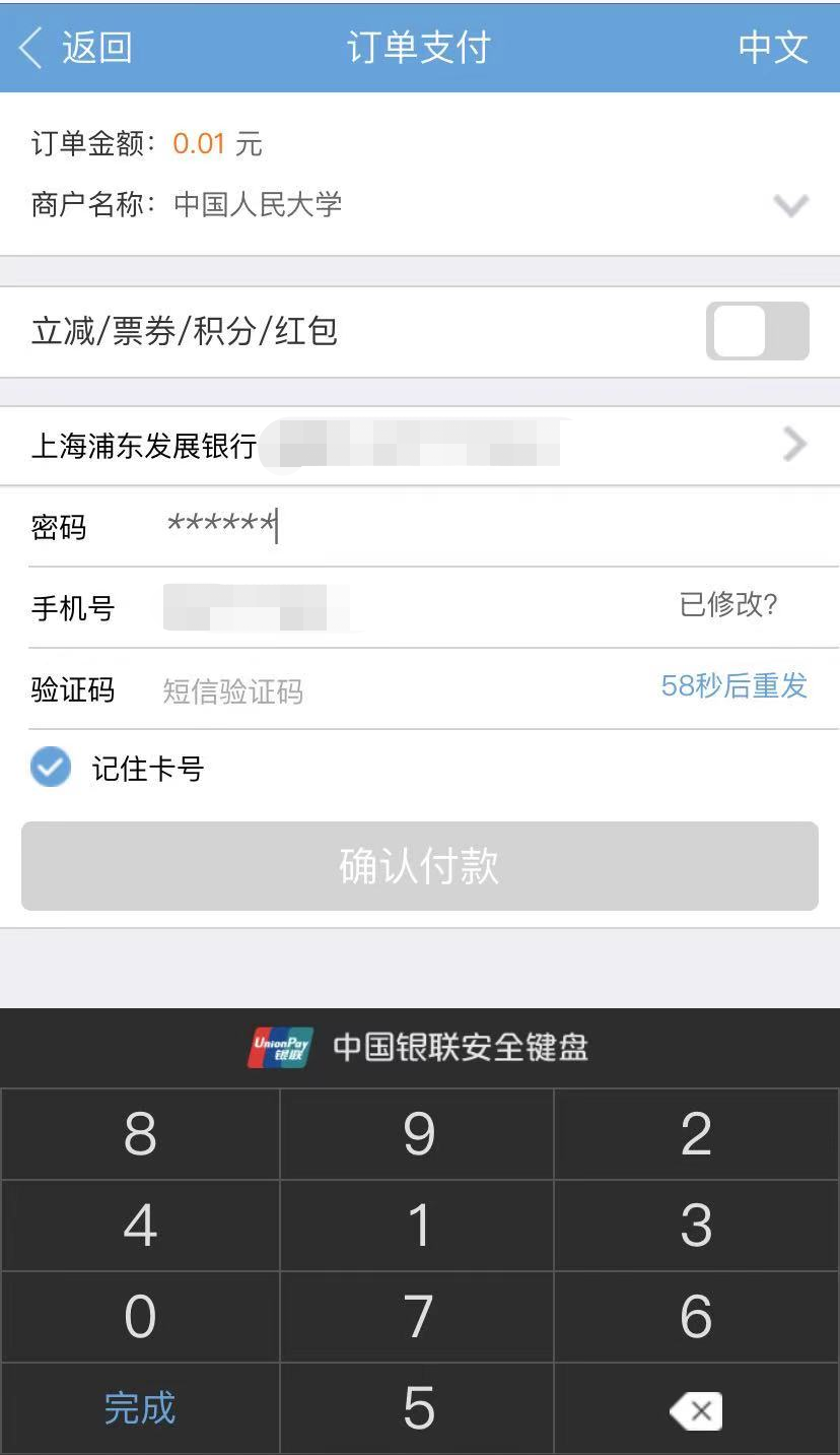 手机端缴费支付展示: