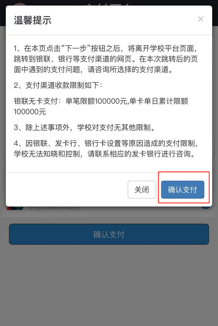 ,跳转至校园支付平台进行后续缴费操作。