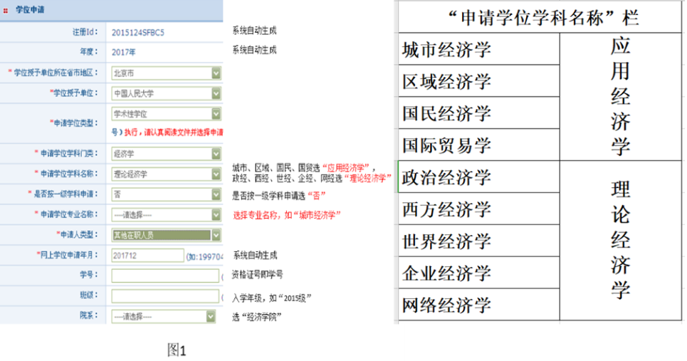 1、填写基本信息;2、上传电子照片(请注意看照片要求,上传错误会影响学位审报);3、提交学位申请,按图1例填写相关内容。“一级学科”一栏:选否;“学号”一栏:学号即资格卡号,查询网址:https://tdxl.ruc.edu.cn/cjcx/
