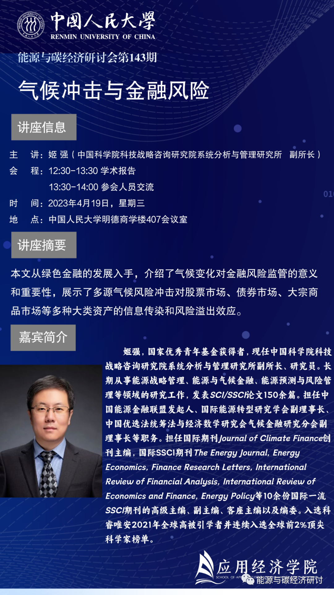 能源与碳经济研讨会(Energy and Carbon Economics Seminar)由yl23455永利能源经济系定期推出,旨在为研究中国能源经济和碳经济问题的学者提供交流的平台。