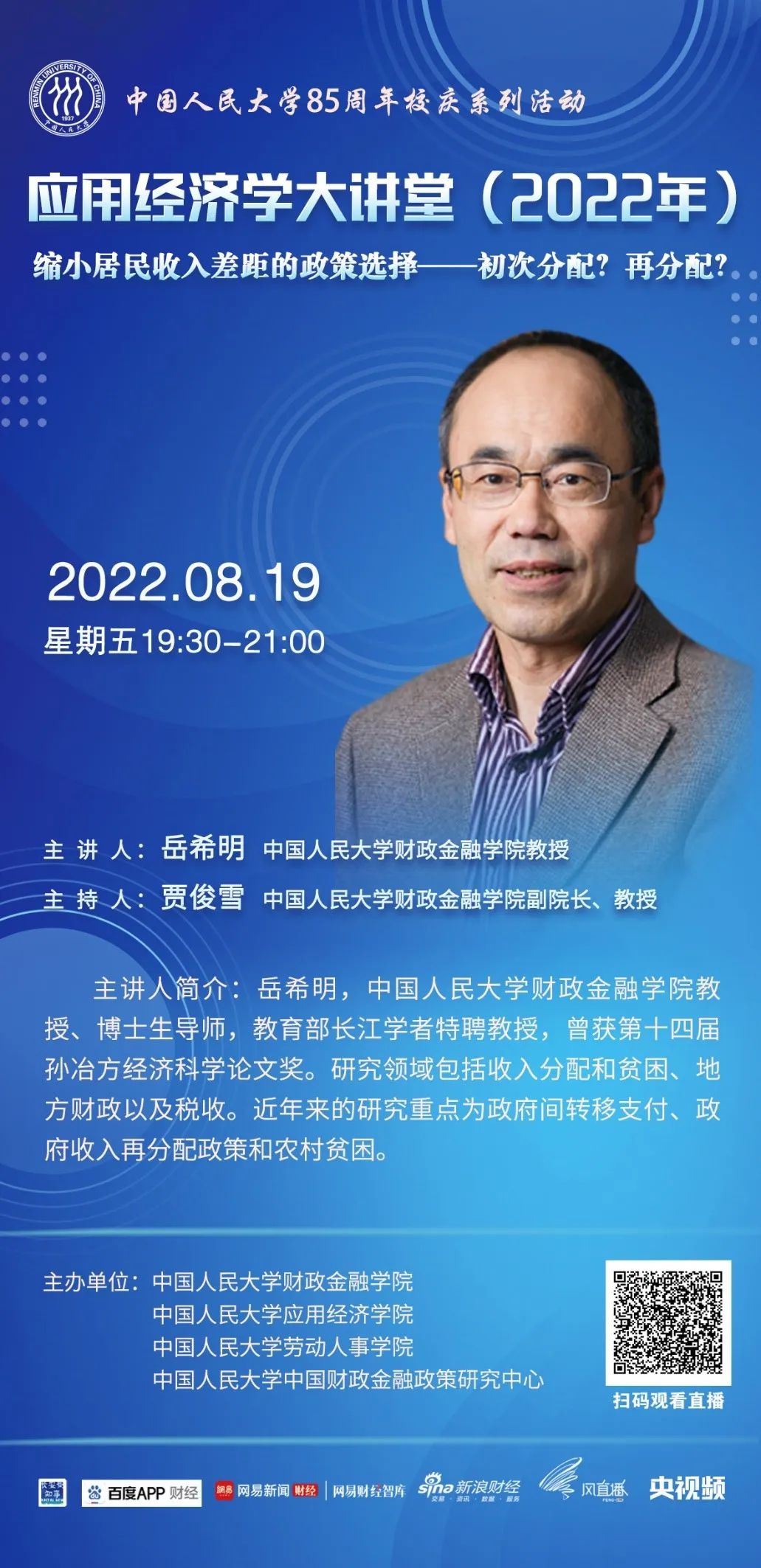 应用经济学大讲堂(2022年) | 岳希明:缩小居民收入差距的政策选择——初次分配?再分配?