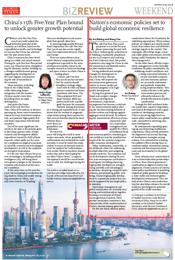 The 15th Five-Year Plan (2026-30) period is a crucial five-year phase connecting the past with the future. Following the achievement of building a moderately prosperous society in all respects and realizing the First Centenary Goal, this period represents a key stage for China to ride the momentum and basically realize socialist modernization. Facing profound and complex changes for development in the 15th Five-Year Plan period, China will improve the macroeconomic governance system to ensure steady and sustained progress in its high-quality development.During this period of profound and complex changes in China's development environment, expectation management has become a vital tool in the macroeconomic policy, altering the decision-making behavior of market entities and helping regulate aggregate social demand. By influencing the transmission efficiency of macroeconomic policies, expectation management can amplify the effects of traditional fiscal and monetary policies, translating social confidence into the steadfastness required for the country's long-term stable economic development.Policy coordination, meanwhile, is the deliberate choice for addressing multiple objectives and navigating complex systems. The economic and social development during the next five years encompasses multi-dimensional goals, including advancing high-quality development, strengthening scientific and technological innovation, deepening comprehensive reforms, and promoting public well-being. China's high-quality development is a systematic project that cannot be supported by any single policy in isolation.Expectation management and policy coordination are mutually reinforcing and interdependent, together forming a crucial part of China's macro governance system. Their positive interaction constitutes a key characteristic of the modernization of China's macroeconomic governance.On the one hand, efficient policy coordination forms the foundation for stabilizing expectations. When various policies are aligned and closely coordinated, they convey clear and definitive strategic signals to the market. This synergistic effect helps shape a clear and stable policy environment, thereby laying a solid foundation for expectation management.On the other hand, effective expectation management creates favorable conditions for policy coordination. By stabilizing market confidence and guiding micro-level behavior, it ensures that both economic and non-economic policies are accurately understood and positively responded during implementation. This reduces friction in the policy transmission process and ultimately enhances the overall effectiveness of policy coordination.