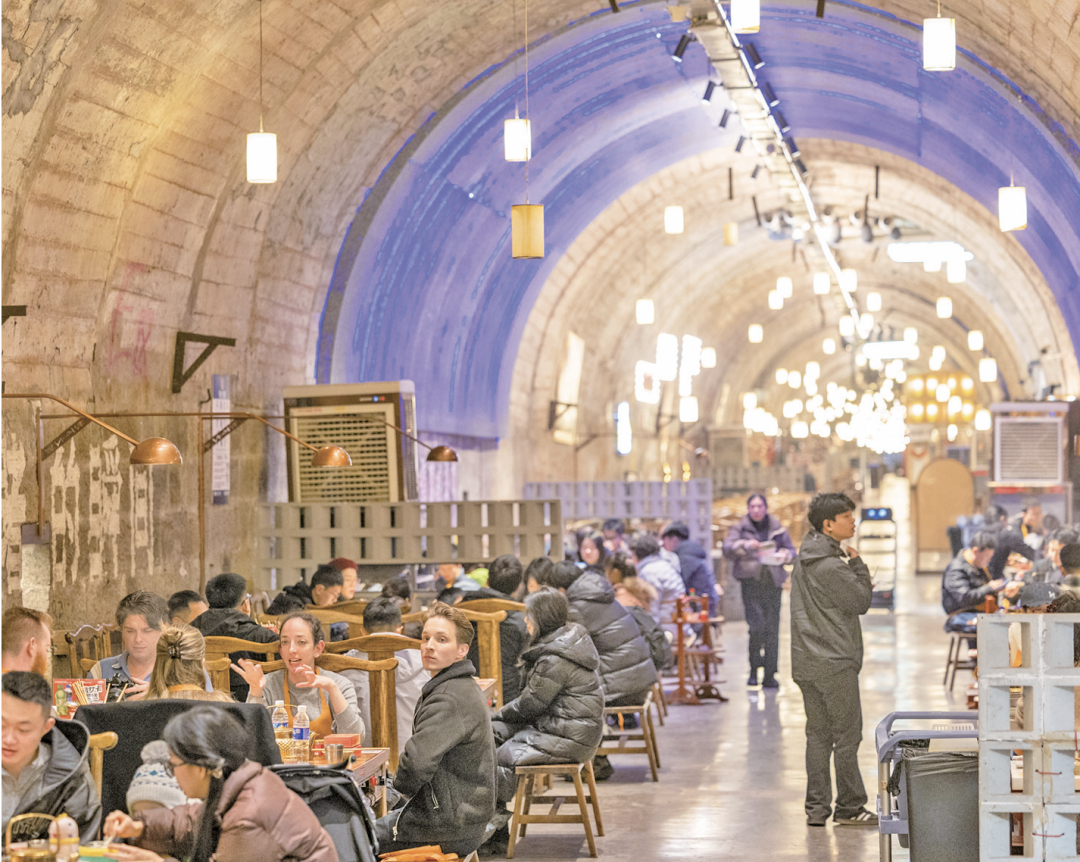 ▲在重庆市两江新区,外国游客在防空洞内品尝重庆火锅。 新华社发