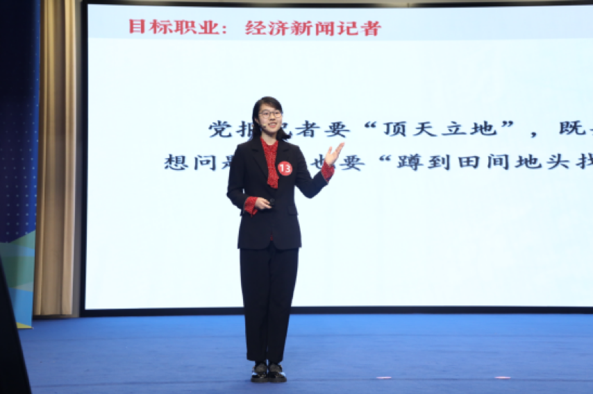 从中国经济故事的阅读者到讲述者,我的转型之路并非坦途。以往的研究更倾向于针对性调研和量化分析,刚开始接触新闻行业时,我常常研读优秀报道至深夜,只为寻找那份独特的新闻感觉。去年十月,左脚第五跖骨骨折一下子打乱了我的工作节奏,让我一度陷入迷茫。然而为了完成新闻稿件,即便坐在轮椅上,我依然坚持阅读写作。也就是在此期间,我写作的《今年秋招,你遇到“AI面试官”了吗?》一文跻身人民日报社传播效果榜单前十,这给予了我极大的鼓舞。随着伤势渐渐转好,我还报名参加了职业规划大赛,相信心底的自信和热爱能赋予我足够的勇气讲好自己的故事和梦想。从校级选拔不断历练,到荣获北京市金奖,这一切都是我没有想到过的。这段经历让我深切体会到:我所热爱的文字,也是支撑我不断前行的力量。