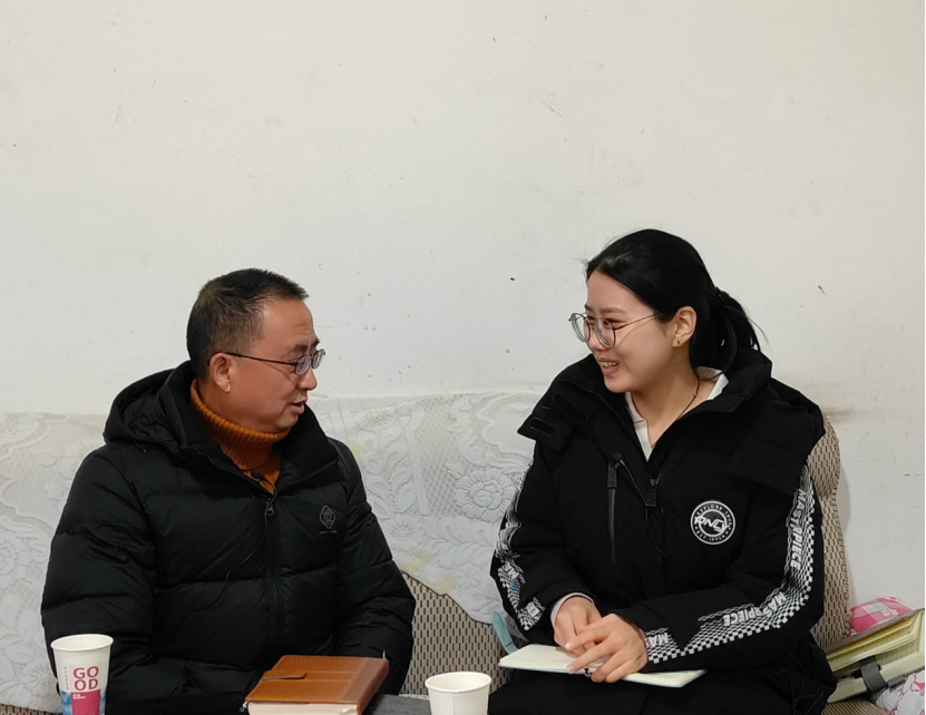 ▲昭通公司管理公司本科生周恩娜访谈脱贫户户主潘兴军