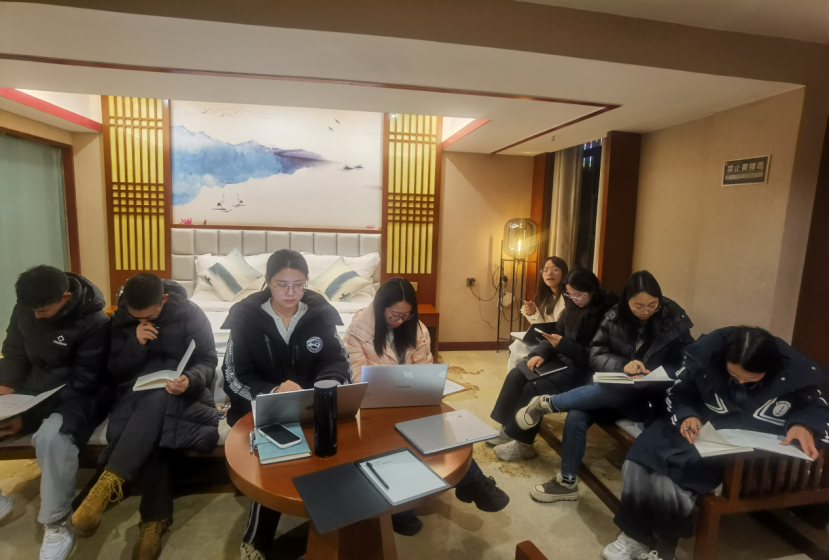 ▲乌蒙山赤水队的老师和同学们在认真学习访谈内容