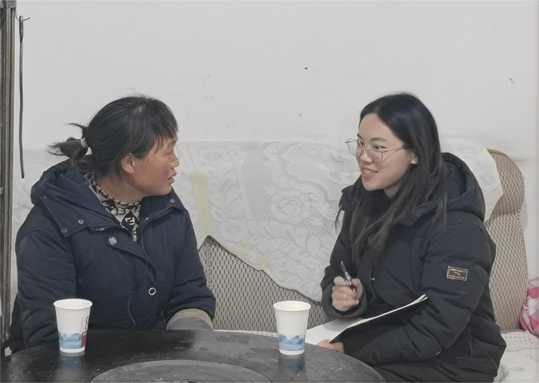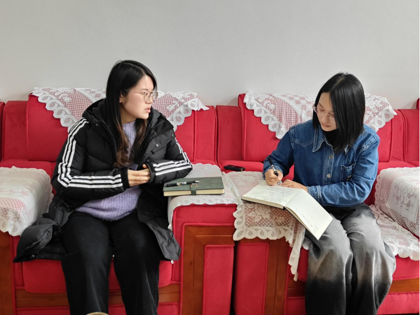 ▲昭通公司管理公司本科生代坦访谈脱贫户户主杨开琴