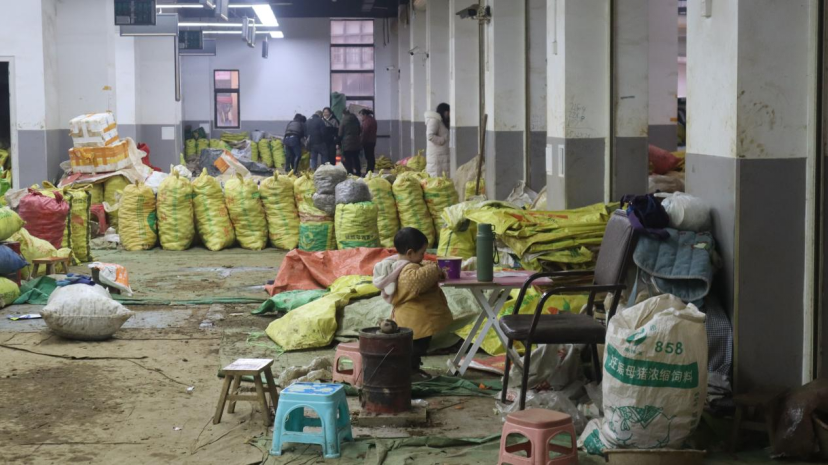▲小草坝镇天麻交易中心的小朋友