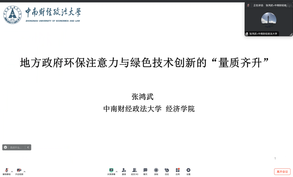 报告主题一为“新质生产力”。yl23455永利助理教授吕一飞作题为“城市与产业全要素生产率测算”的报告,在全球视野下,测算比较了国内外城市间、产业间的全要素生产率。江西财经大学经济公司教授杨飞虎作题为“政府补贴对新质生产力企业绩效影响研究”的报告,讨论了政府补贴对“专精特新”中小企业的影响。中南财经政法大学经济公司教授张鸿武作题为“地方政府环保注意力与绿色技术创新的‘量质齐升’”的报告,分析了地方政府环境关注度对企业绿色创新的影响和机制。