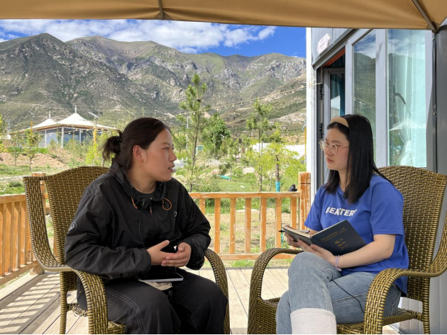 ▲西藏大学经济与管理公司硕士生任文丽访谈城关区乡村振兴局局长次仁卓嘎