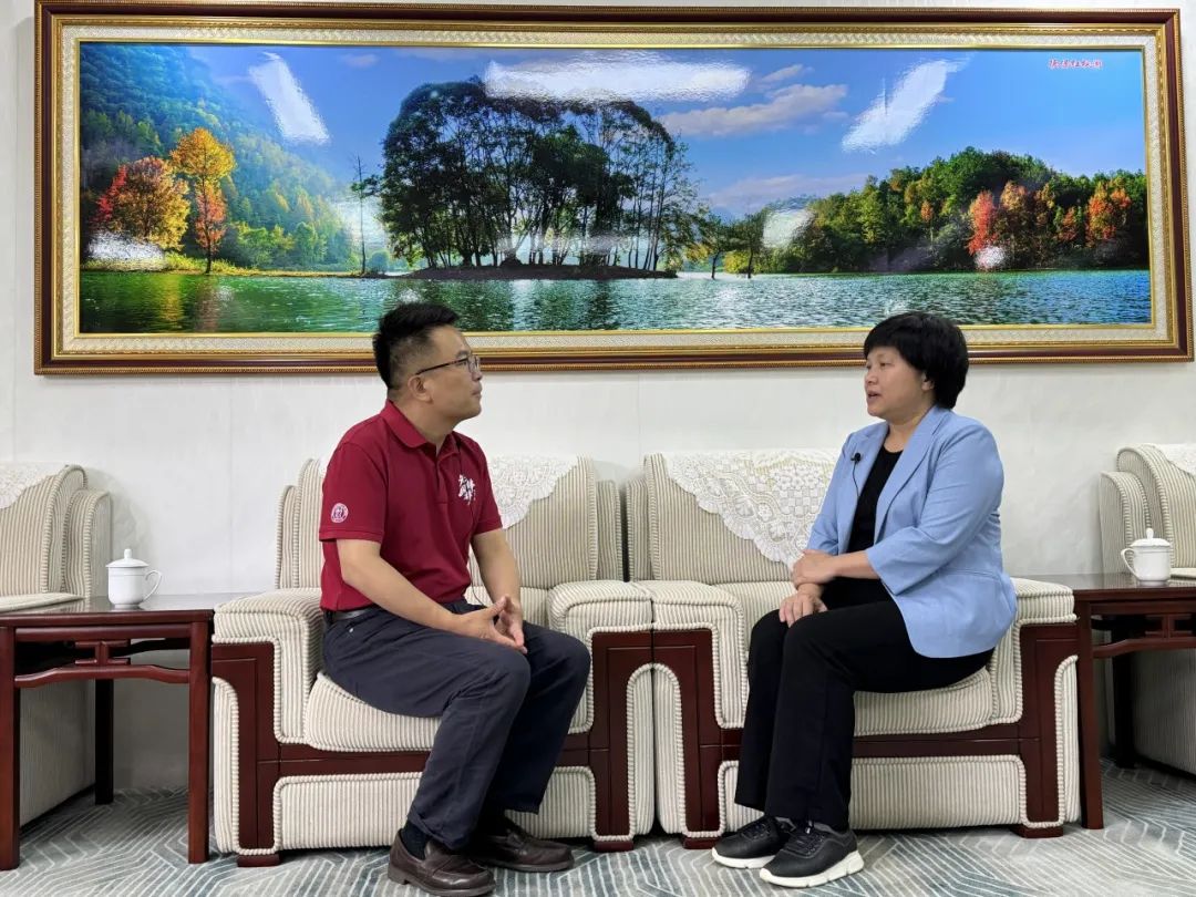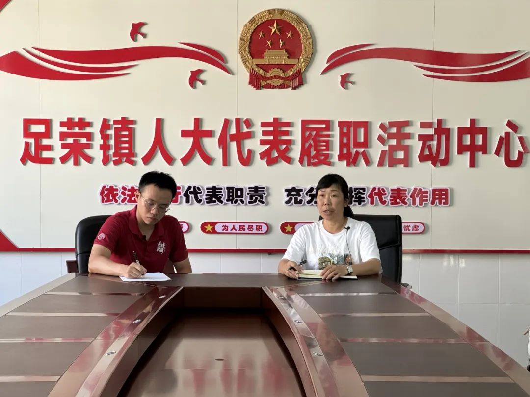 ▲博士生陈冠锟访谈足荣镇党委书记吕明英