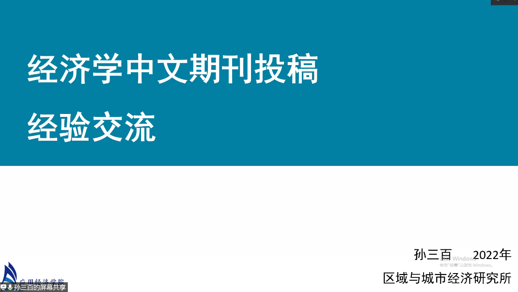 主讲题目:经济学中文期刊投稿经验交流
