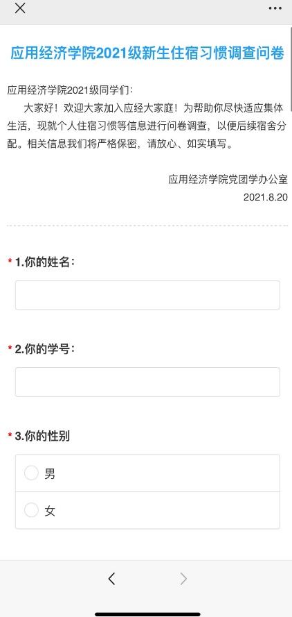 宿舍生活是新生生活的最小单元。在公司住宿调查的基础上,公司精心制作了包含16个问题的调查问卷,涉及基础信息、睡眠习惯、特殊偏好、寝室定位、人际期待等内容,全方位了解同学们的个性化需求,力求为同学们绘制精准住宿自画像。根据新生调查结果分配宿舍和床位,帮助新生尽快适应集体生活。