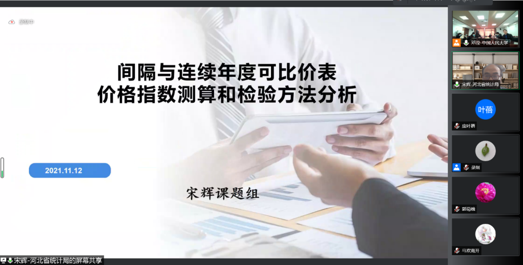 河北省投入产出与大数据研究院经理教授宋辉以“间隔与连续年度可比价表价格指数测算和检验方法分析”为主题展开报告。他回顾并评述了价格指数编制的现有研究成果,介绍投入产出理论价格指数模型特点、测算步骤,并以河北省1997-2017序列可比价投入产出表为例介绍编制步骤以及检验结果。