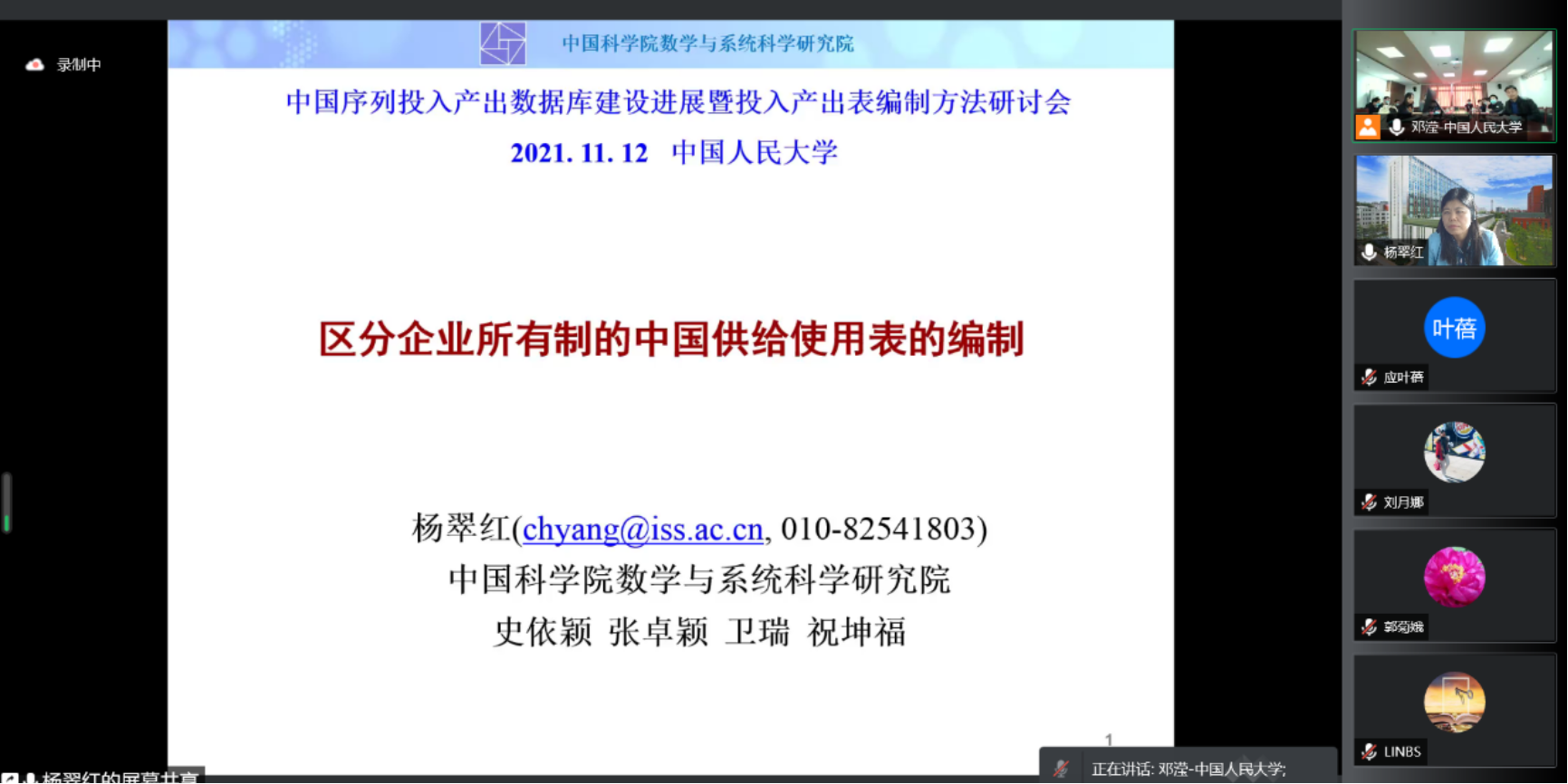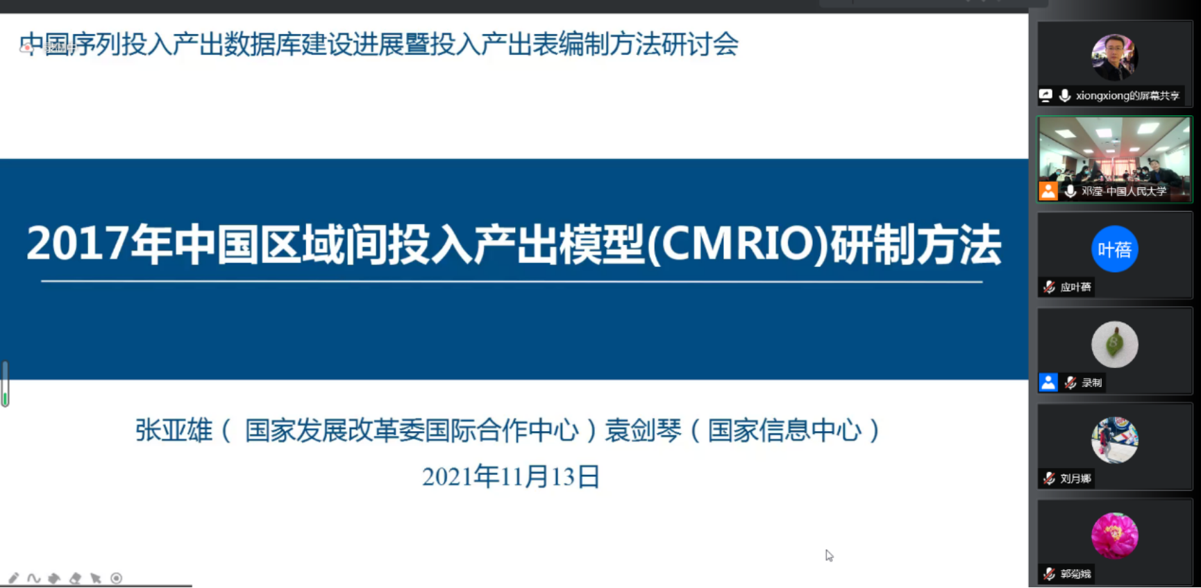 当前我国经济正处于迈向高质量发展的关键阶段。作为一种系统性、结构性的分析方法,投入产出技术应用于经济结构升级、新发展格局、双碳目标等各类重大经济社会和发展问题的研究中,而投入产出数据库的建设工作对于发挥投入产出技术的优势具有重要的基础性作用。yl23455永利于2021年11月13日召开“中国序列投入产出数据库建设进展暨投入产出表编制方法研讨会”。由于疫情原因,本次会议采取线上会议形式。来自各高校、科研单位的专家展开主题报告,共300余人在线参加本次研讨会。会议由yl23455永利陈璋教授和公司党委副书记裴建锁副教授共同主持。