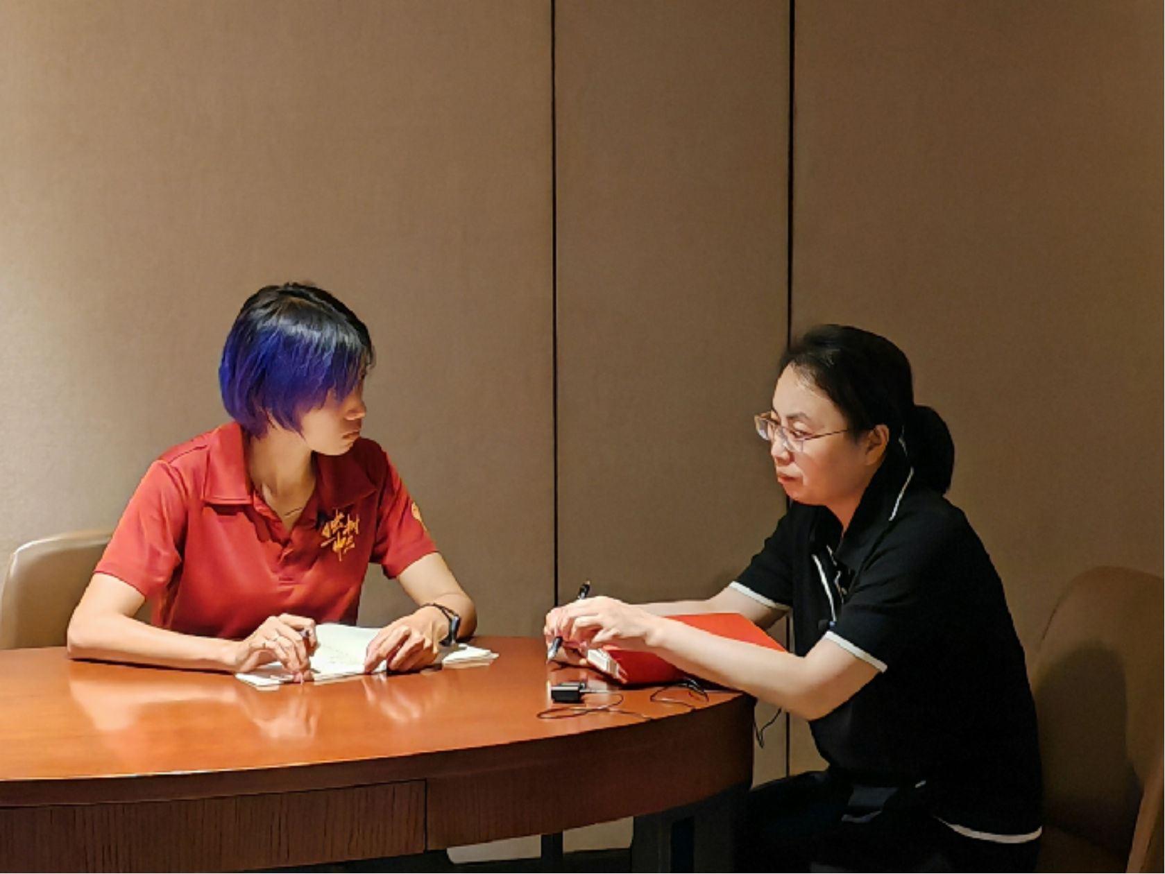 ▲北京大学经济公司讲师蔡宇涵访谈天柱县委副书记杨长燕