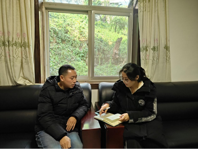 ▲昭通公司马克思主义公司成冬梅老师对镇雄县农业农村局副局长龚海访谈后赠书留念