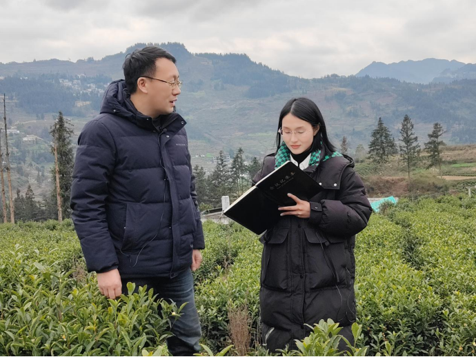 ▲乌蒙山赤水队调研镇雄县罗坎镇大庙村白茶产业发展