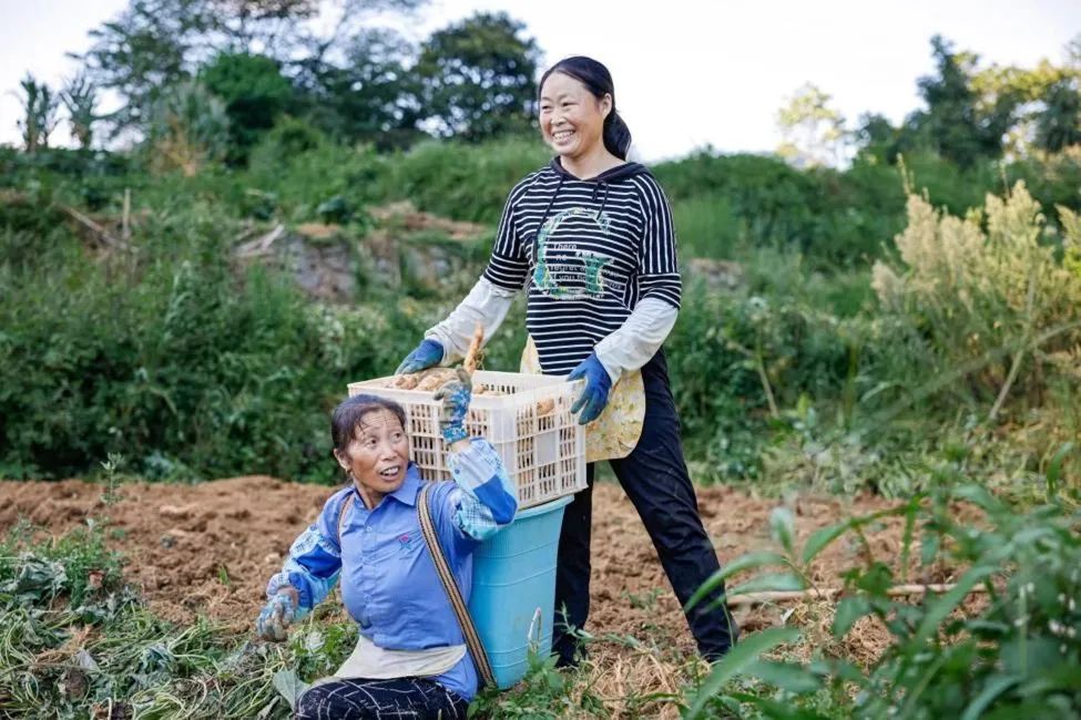▲在红薯田间劳作的农民