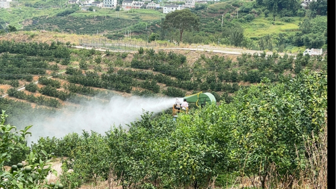 ▲沃柑基地的工人正在灌溉
