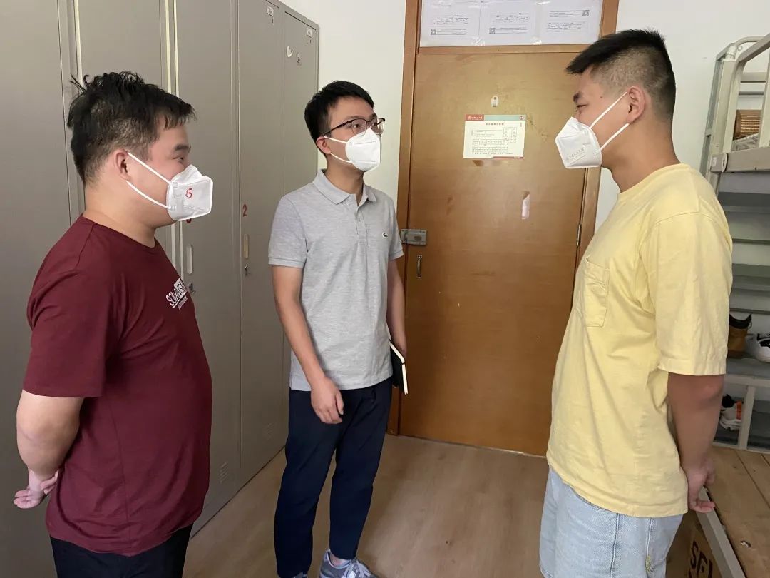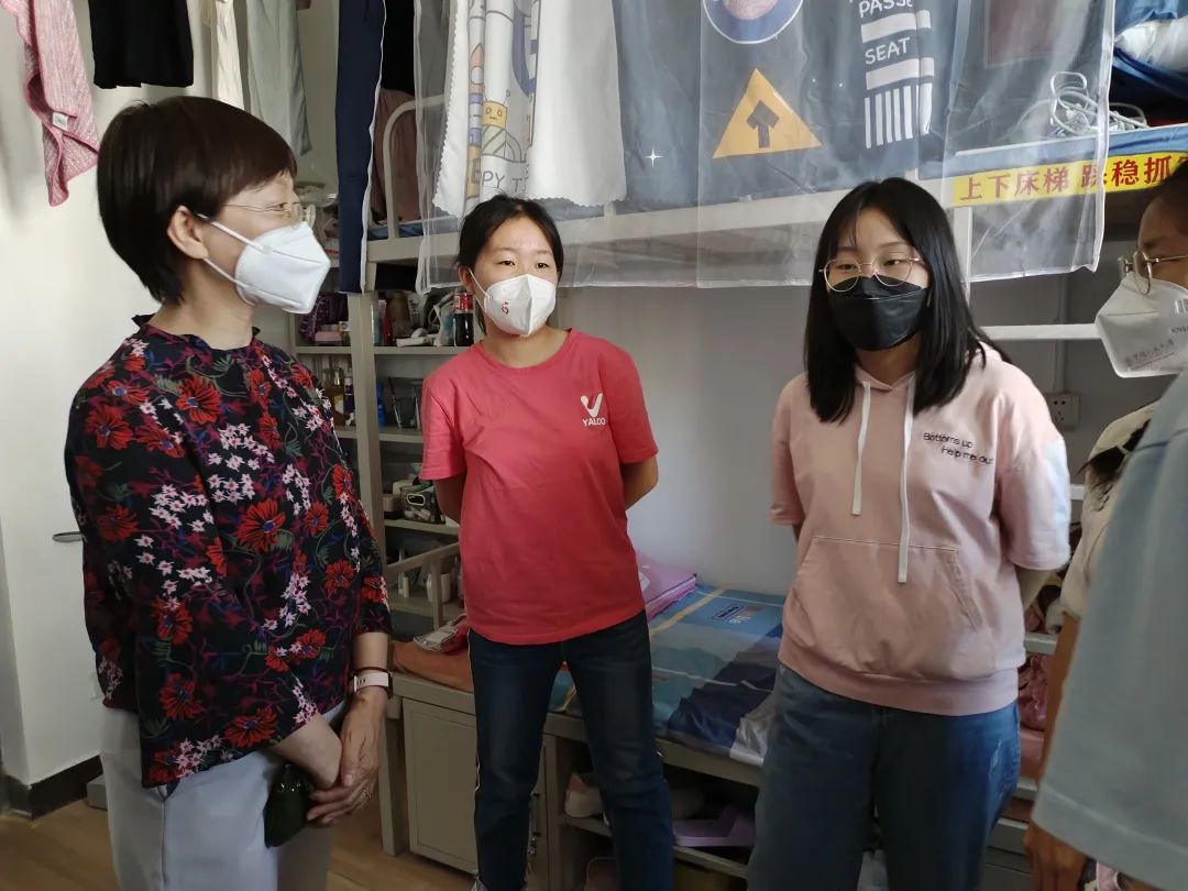 公司管理团队成员、新生班主任和班级辅导员分别前往新生宿舍看望慰问。老师们仔细询问了同学们的适应情况,暖心了解同学们的需求和困难,细心嘱咐同学们要注意疫情防控和网络安全,希望同学们珍惜时光、努力学习,成为德智体美劳全面发展的社会主义建设者和接班人。