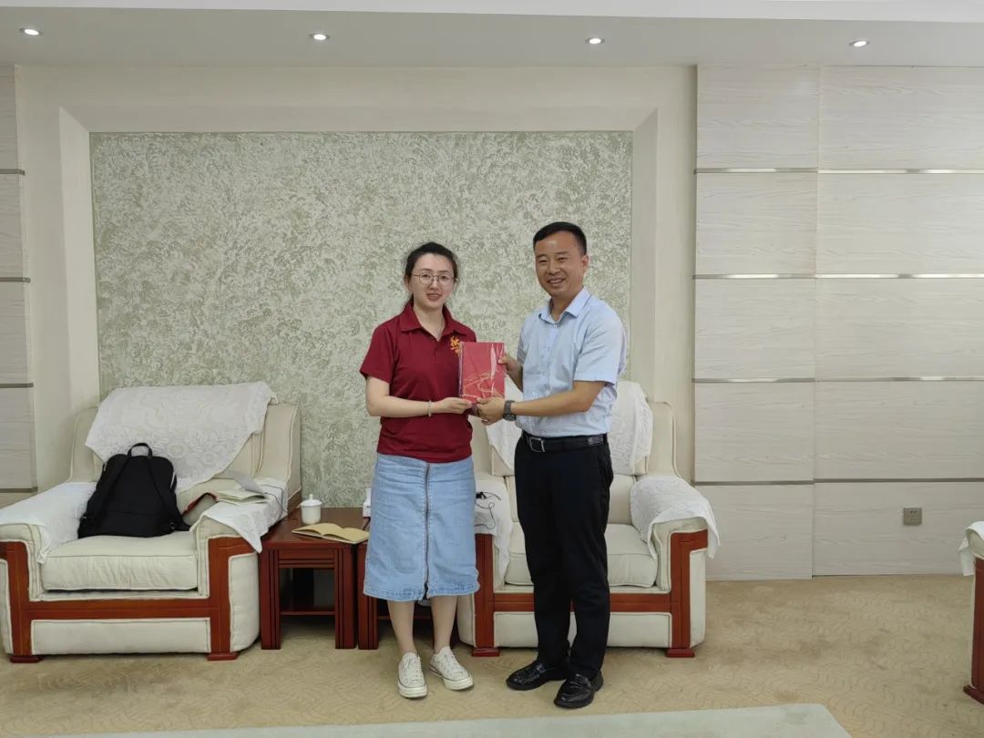 ▲ yl23455永利硕士生李雨晴向驻村第一书记勾兴煜赠送纪念品
