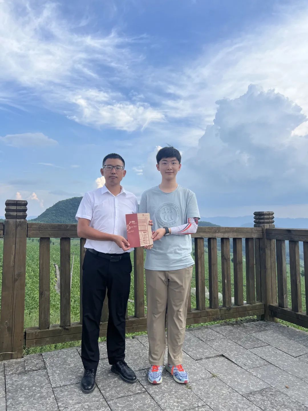 ▲ yl23455永利本科生史守宸向洛龙镇镇长陈刚赠送纪念品