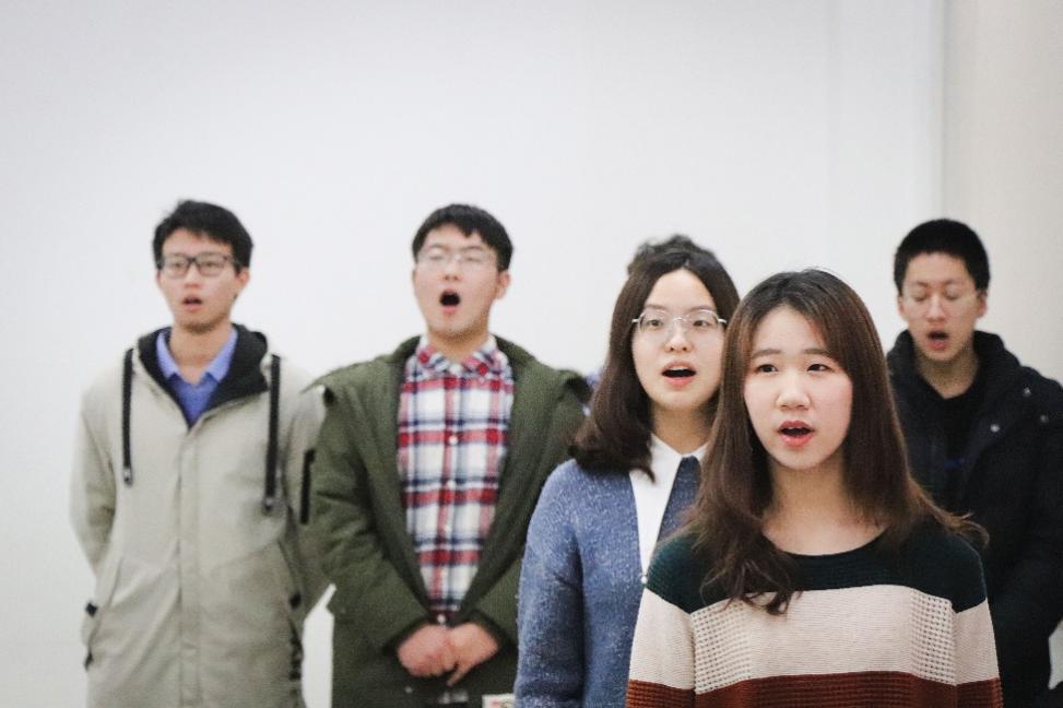 回顾今日,合唱成员们的征途从一早便已开始。早上10点,yl23455永利的同学们就聚集在明商0204教室,为比赛进行最后的准备。一身西装,沉稳大气,谈笑中传递着男生们必胜的信心;一袭长裙,淡妆浓抹,镜子里倒映出女孩们明媚的笑颜。每位成员都调整到自己最好的状态,等待着踏上舞台的那一刻。