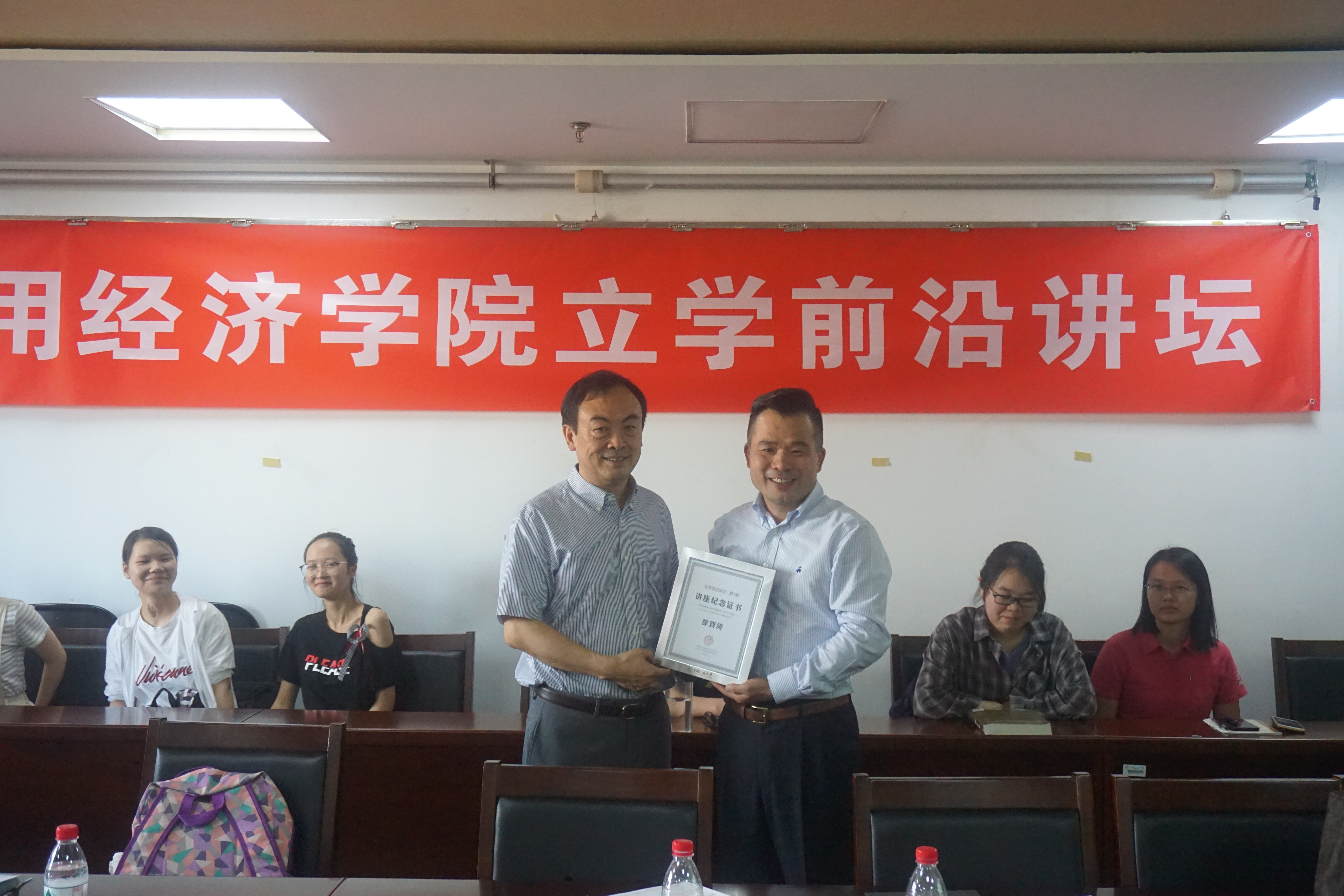 最后,yl23455永利经理郑新业教授为徐晋涛教授颁发讲座纪念证书,讲坛获得圆满成功。