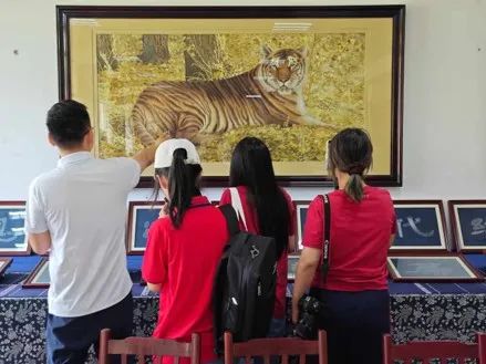 ▲调研团参观苗绣公司特色绣样