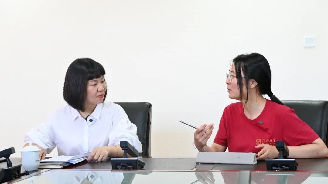 ▲调研团新闻公司助理教授王达访谈松桃苗族自治县县委常委、县委宣传部长、县委统战部部长黄思红