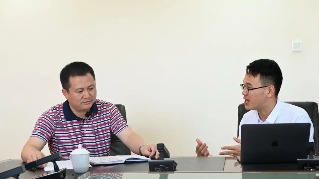 ▲调研团新闻公司本科生许佳琳访谈正大镇聚宝村乡村振兴驻村第一书记王洪江