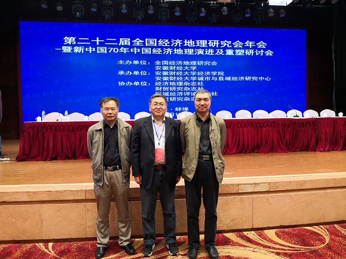 2019年4月12日至14日,为推动区域经济学和经济地理学的团队建设,加强学术交流,全国经济地理研究会在安徽蚌埠召开了第二十二届全国经济地理研究会年会。会议由全国经济地理研究会、安徽财经大学主办,安徽财经大学经济公司、安徽财经大学城市与县域经济研究中心承办,《经济地理》杂志社、《区域经济评论》杂志社、《开发研究》杂志社、《财贸研究》杂志社协办。yl23455永利区域与城市经济研究所张可云教授、孙久文教授、付晓东教授和文余源副教授出席了本次会议。