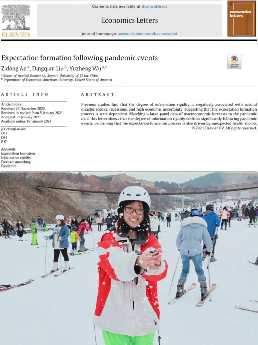 在能源经济专业的四年学习中,我不仅学会了常规的经济学知识和一些有趣的能源技术,也学会了将经济学原理应用于实际能源问题分析中。无论在保研升学还是在实践实习中,独特的专业知识背景都是我们从经管大类茫茫学子中脱颖而出的“加分项”,在“双碳”的背景下更是如此。除本科专业知识之外,我的科研能力也得到了显著提高。老师们深耕于各自的领域,并且甘于倾囊相授,耐心与同学们讨论学术问题,指导同学们做课题研究、撰写学术论文。我便是受益者之一。在公司安子栋老师的帮助下,我从不知科研为何物到参与数据收集、文献综述等研究助理工作,再到与安老师合作完成SSCI期刊论文发表,让我的科研能力有了长足的进步。时光荏苒,转眼间我已离开校园,即将开启读研深造之旅,在应经的经历是我永远值得珍藏的宝贵财富。