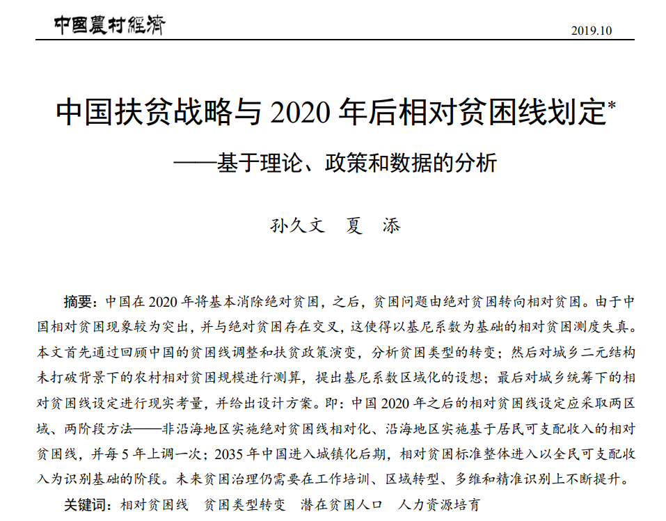 《中国扶贫战略与2020年后相对贫困线划定一一基于理论、政策和数据的分析》 |