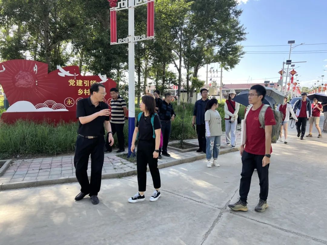 ▲屯垦镇人大主席武彪向同学们介绍南井子村易地搬迁的基本情况