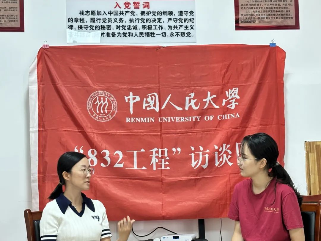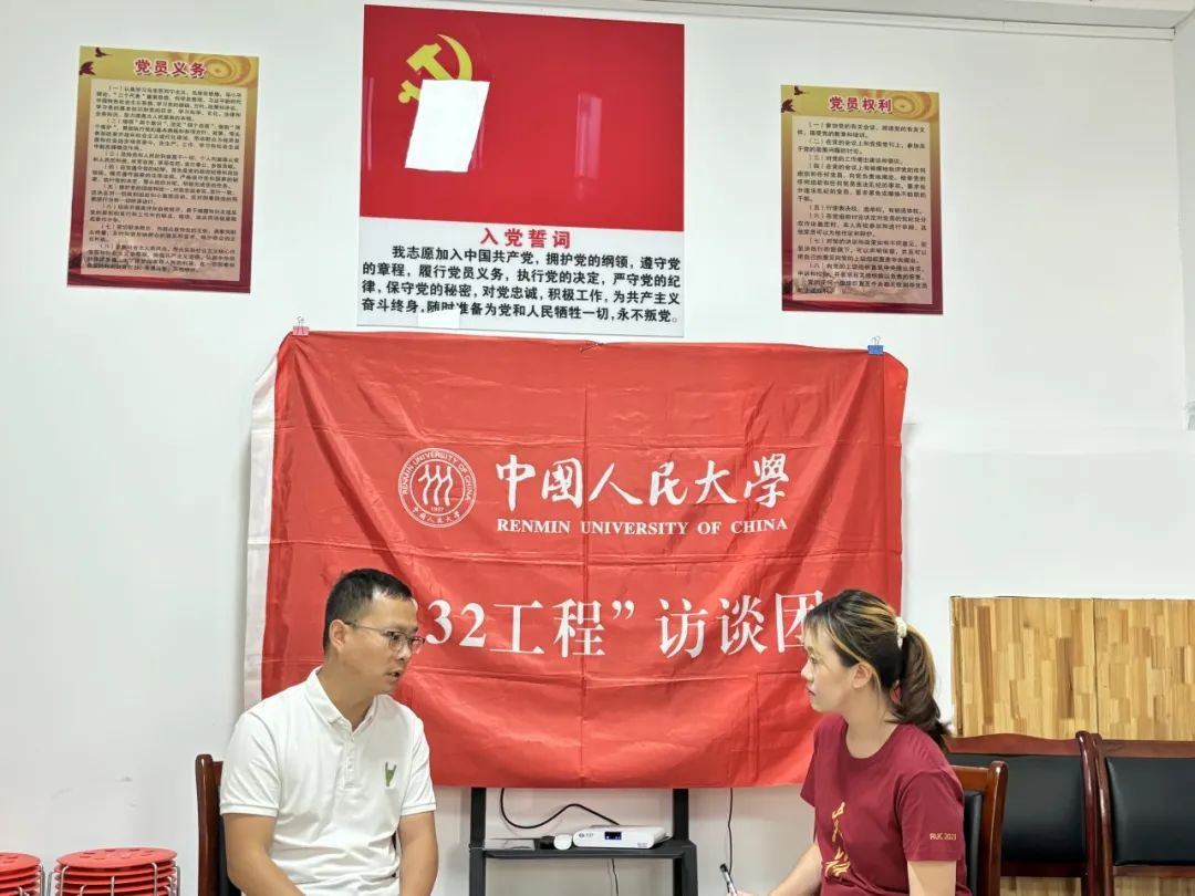 ▲访谈团硕士生傅蔷访谈屯脚镇鲤鱼村驻村第一书记袁梓睿
