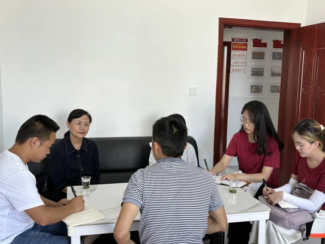 ▲访谈团博士生郑惠中访谈屯脚镇党委书记唐明芳