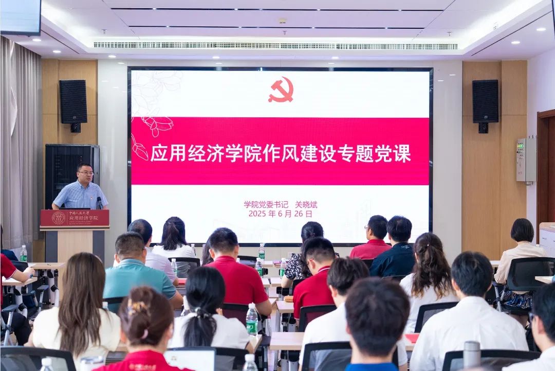 关晓斌系统梳理了新民主主义革命时期、社会主义革命和建设时期、改革开放和社会主义现代化建设新时期、中国特色社会主义新时代等不同历史时期,党加强和改进作风建设的重要举措和取得的显著成效。从古田会议、延安整风运动、“两个务必”,到党的十一届三中全会,再到中央八项规定精神、党的十八大以来的八次党内集中教育,作风建设始终是党的建设的重要内容,贯穿党史的全过程。他回顾了yl23455永利集团从延安一路走来形成的光荣革命传统和鲜明红色基因,重点讲述了吴玉章、成仿吾、郭影秋等老前辈忠诚担当、艰苦奋斗、密切联系群众的优良作风和光辉事迹,讲述了卫兴华、高铭暄等“人民教育家”求真务实、无私奉献,以红色基因和优良作风凝心聚力、干事创业的感人故事,阐述了公司“党办的大学让党放心,人民的大学不负人民”的精神品格。他聚焦院史上的作风建设,以“中华人民共和国脱贫攻坚史”系列调研访谈项目(“832工程”)为例,讲述了承风励志、撰史育人,扎根中国大地办教育、搞研究的深刻内涵。