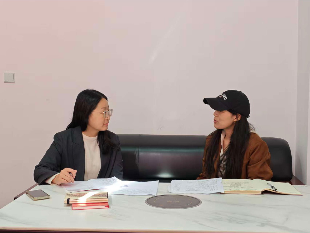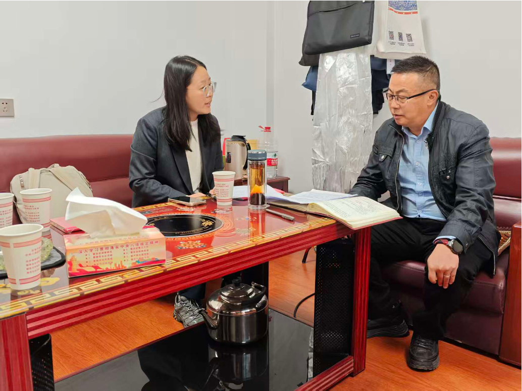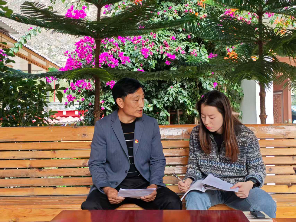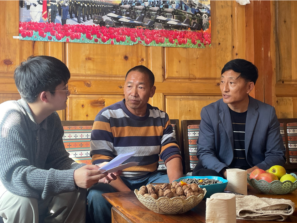 ▲北京林业大学硕士生陈婧茹访谈毛屋村村书记扎西曲批