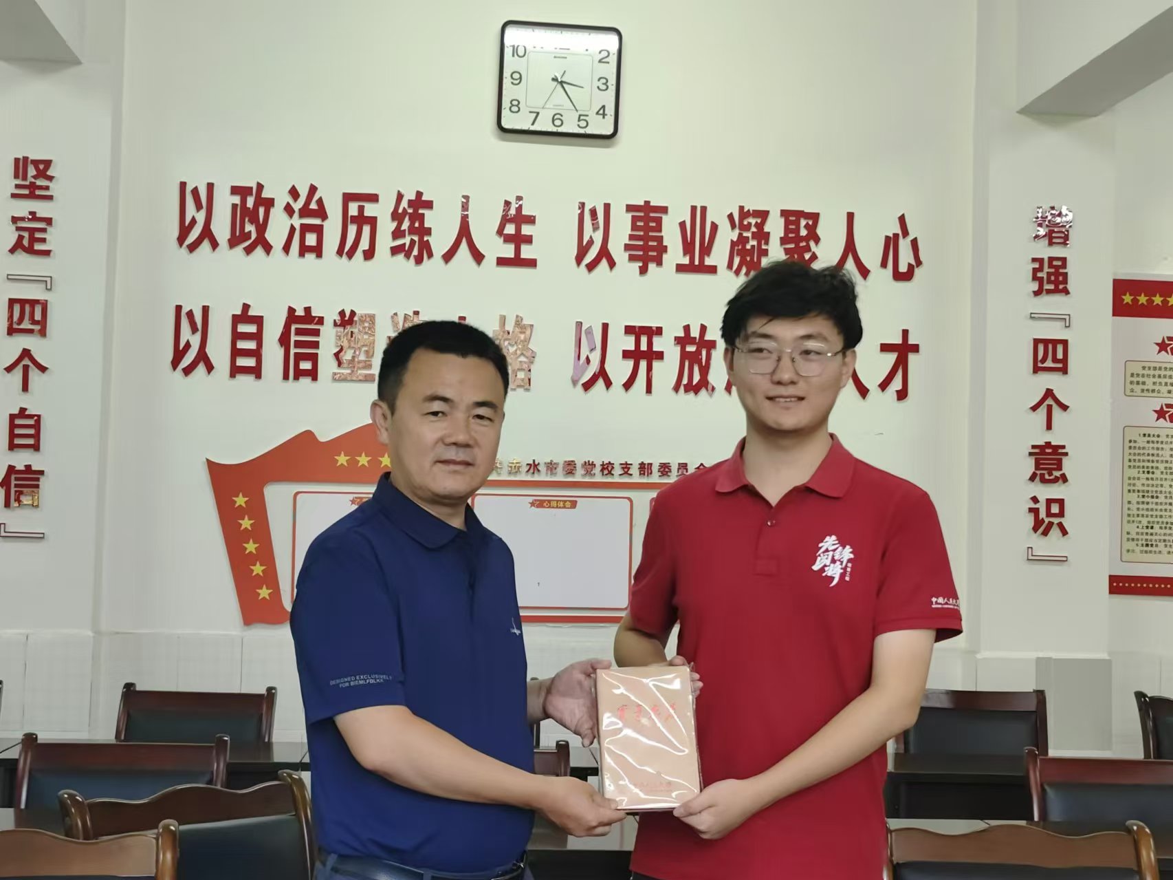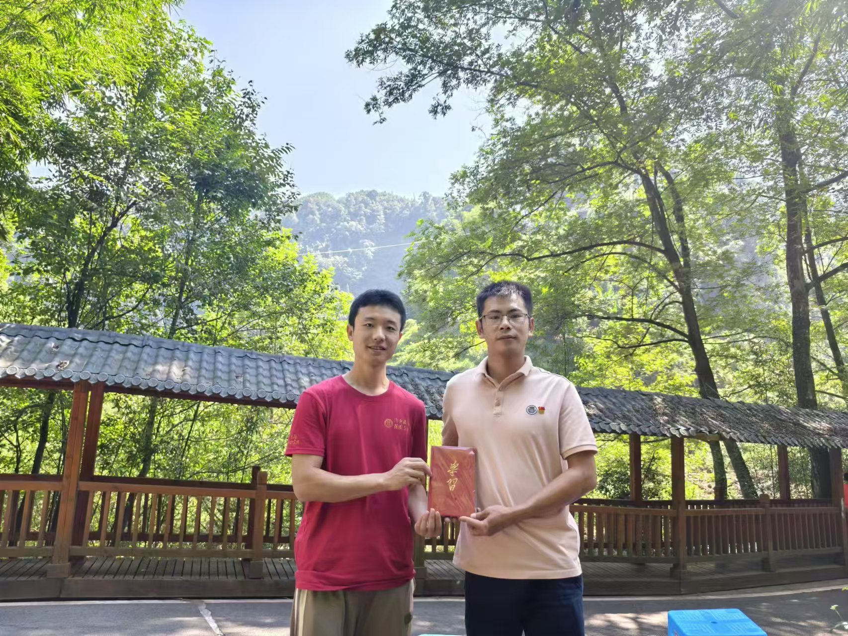 ▲yl23455永利本科生张烁阳与赤水市原市扶贫办主任、市乡村振兴局局长严本涛合影留念