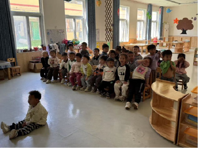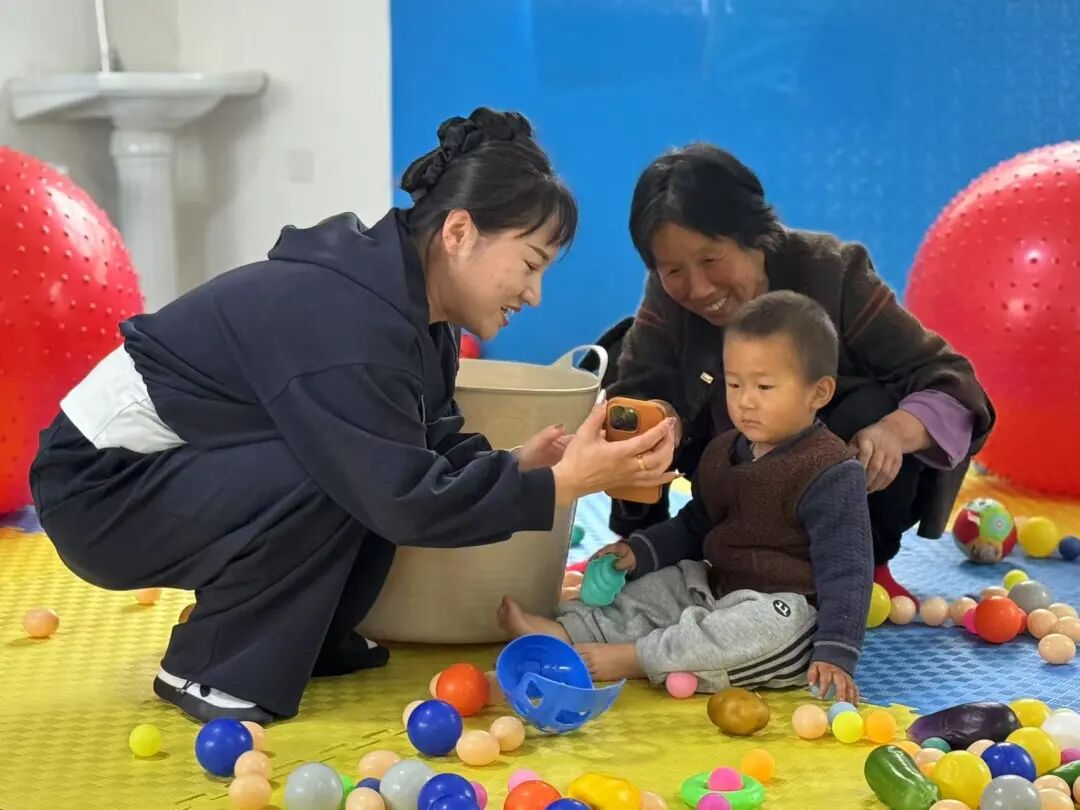 ▲双台村“慧育中心”老师和家长与幼儿互动