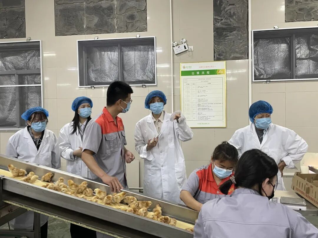 调研团队抵达河北峪口禽业孵化车间。该项目由北京华都峪口禽业公司投资建设,该公司是集蛋种鸡生产、饲料加工、中式食品加工为一体的跨行业、跨地区经营的农业产业化国家重点龙头企业。河北峪口禽业有限公司是峪口禽业涉足中国肉鸡领域的第一家分公司,在肉鸡种源封关的背景下,峪口禽业发挥育种优势,培育适合中国饲养环境和市场需求的自主知识产权新品种。