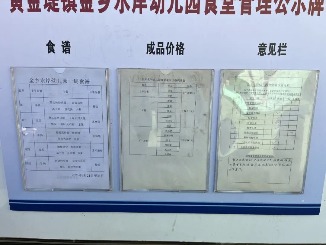 ▲金乡水岸易地扶贫搬迁社区配套幼儿园食堂管理公示牌