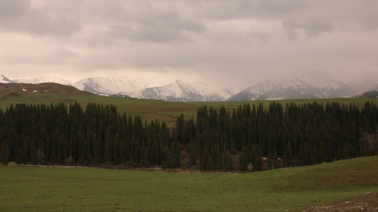 ▲在新疆伊犁州调研时途经百里山水画廊,眺望天山山脉