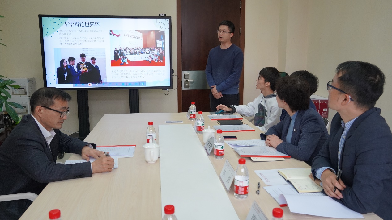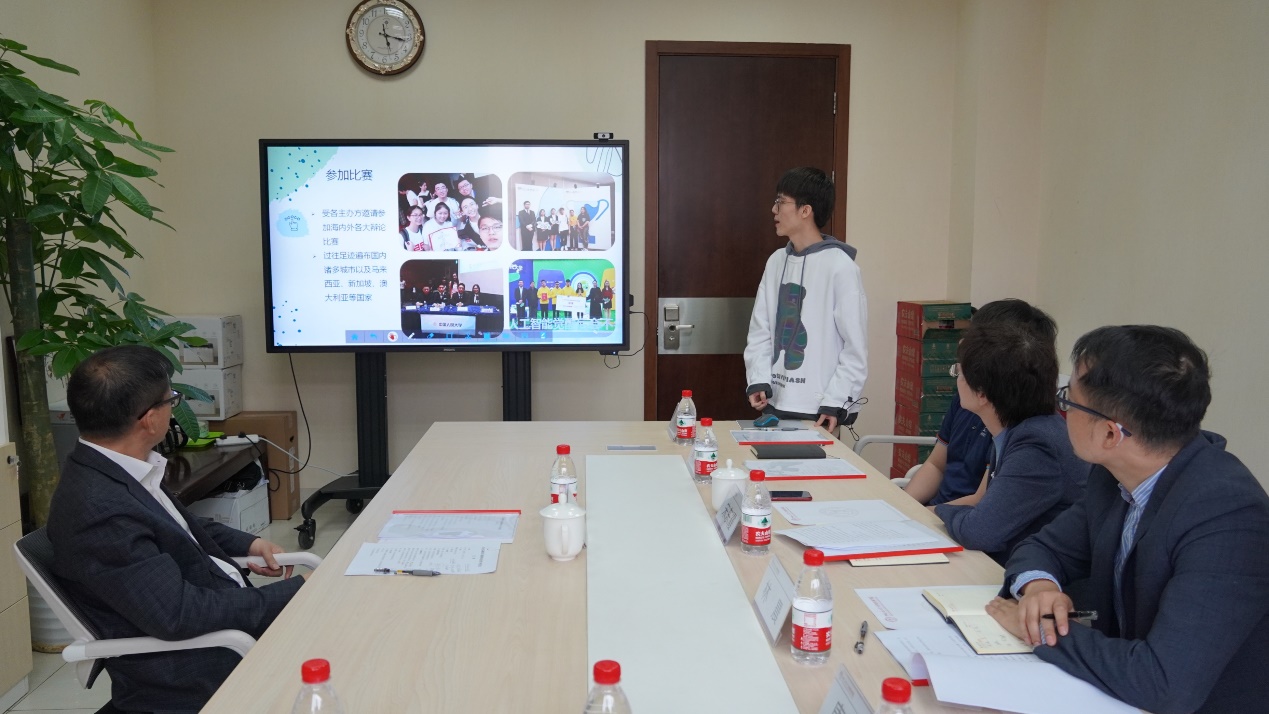 随后纵横辩论社现任社长、yl23455永利2018级本科生陈梓霖,第十五届社长、公共管理公司2017级本科生唐梓淳,公司党委副书记林晨与社团指导老师黄昊分别就社团基本情况、参赛获奖情况以及社团指导工作开展情况进行了汇报。